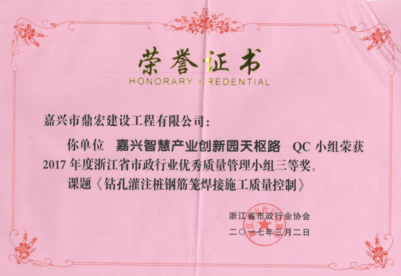 2017年浙江省市政行業(yè)QC獎